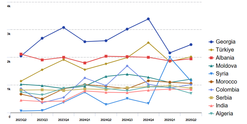 En fazla karar çıkaran ülkeler Fransa (34 bin 760), İspanya (14 bin 545) ve Almanya (14 bin 95) oldu. Vatandaşlık bazında en çok etkilenen gruplar Cezayir (9 bin 805), Fas (7 bin 85), Türkiye (6 bin 310), Suriye (5 bin 465) ve Mali (4 bin 720) vatandaşlarıydı. Türkiye vatandaşlarına verilen emirler bir önceki çeyreğe kıyasla yüzde 8,5 azaldı.