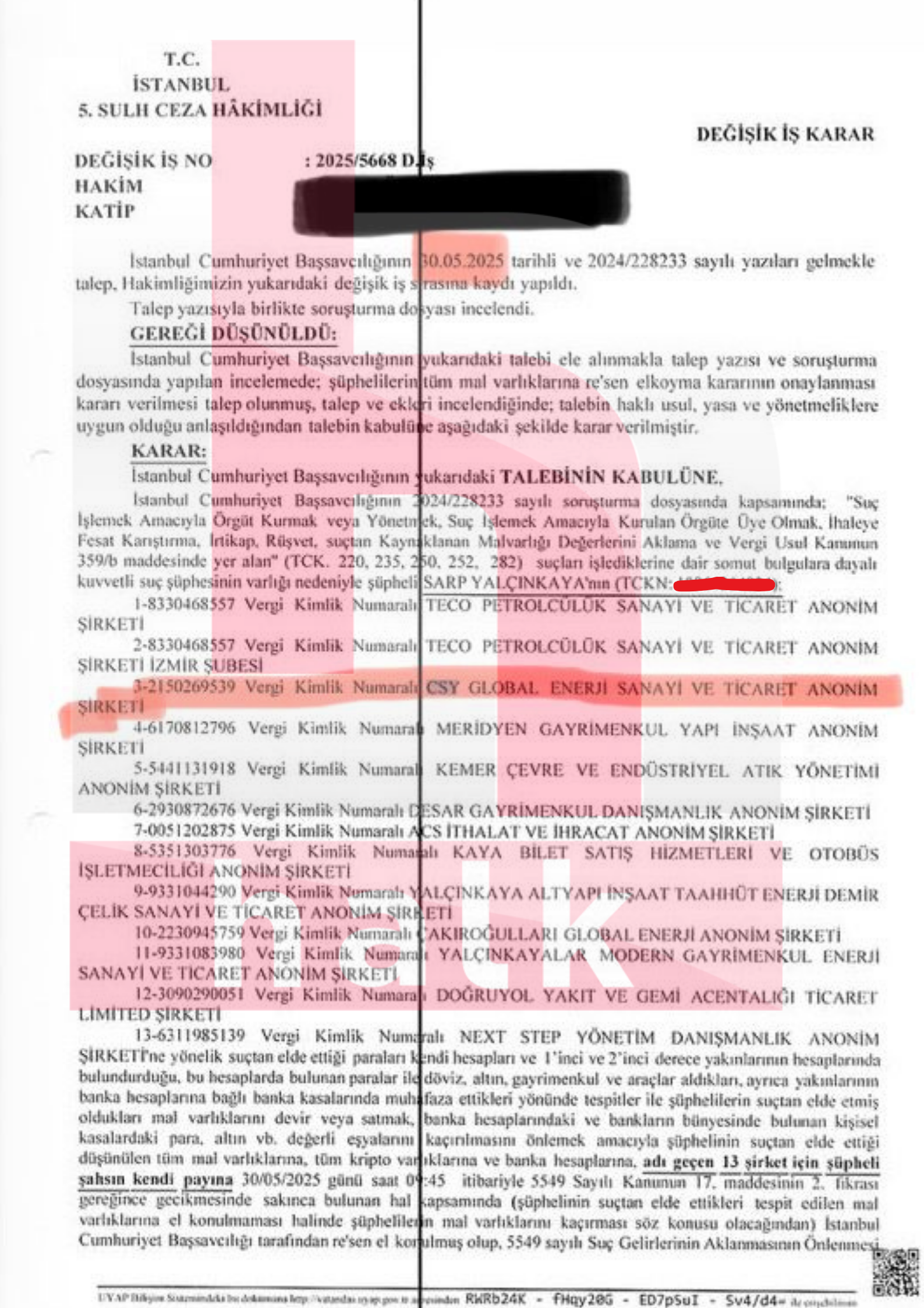 “26 Mayıs günü tutuklanan iş adamı Sarp Yalçınkaya 29 Mayıs günü 8 milyon doları bir kuyumculuk firmasına gönderiyor. Kuyumculuk üzerinden almaları daha kolay diye böyle yapmışlar. Çünkü İBB dosyasındaki tüm avukatlık ücretlerini toplasanız 8 milyon dolar olmaz. Bu ücreti açıklayamazlar. Ardından TMSF 30 Mayıs’ta mal varlığına el koyuyor. O kadar açık ki bir anlaşma var, süre tanıma var. “